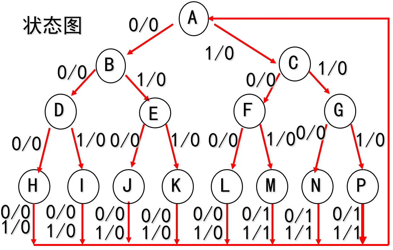 以下是101串行序列检测器(可重叠)的状态图和状态表。0/0表示输入信号0时输出信号0,当且仅当序列检测到了时输出信号才为1。