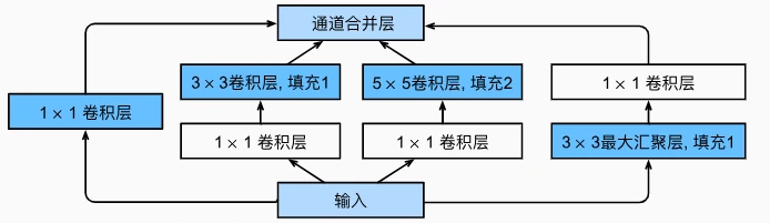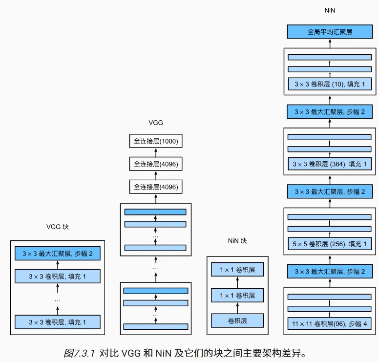 - 结尾层:全局平均池化 + 全连接层,输出分类结果(如图 7.6.4)。